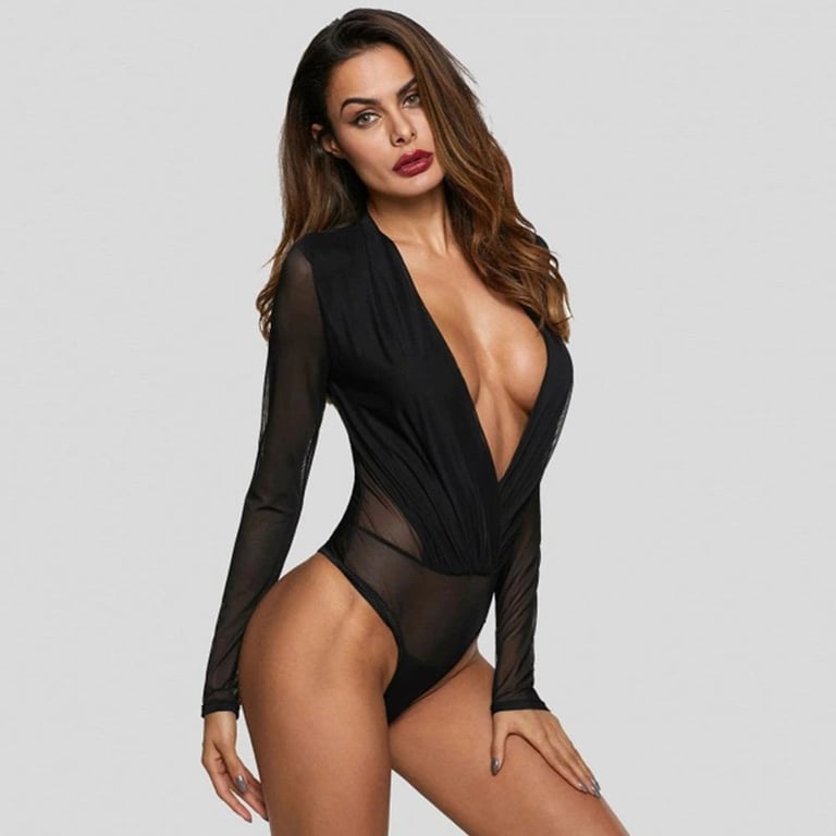 Women's Sheer Bodysuit with Long Sleeves