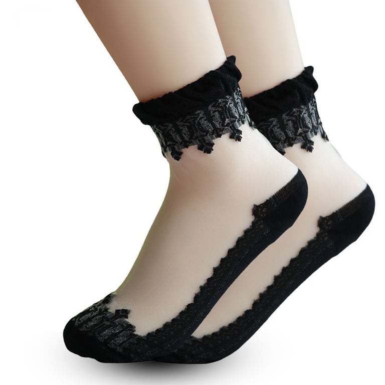 Women's Sheer Socks with Lace - 5 Pairs