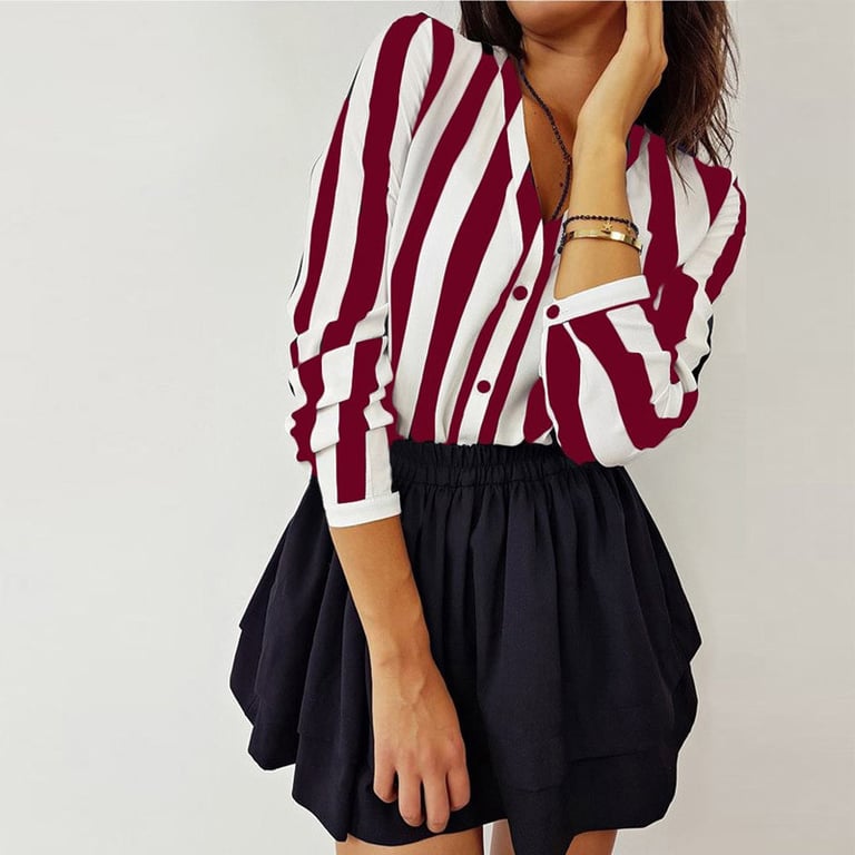 Women's shirt blouse with long sleeves. The blouse features a V-neck and button fastening. Pattern with wide stripes. Available in two variants.