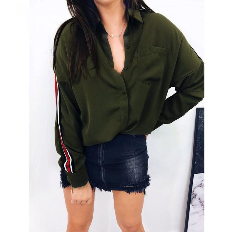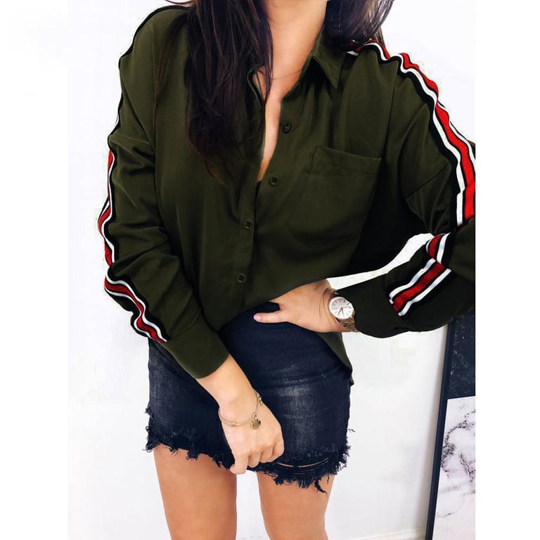 Women's elegant shirt with stylish stripes on the sleeves.