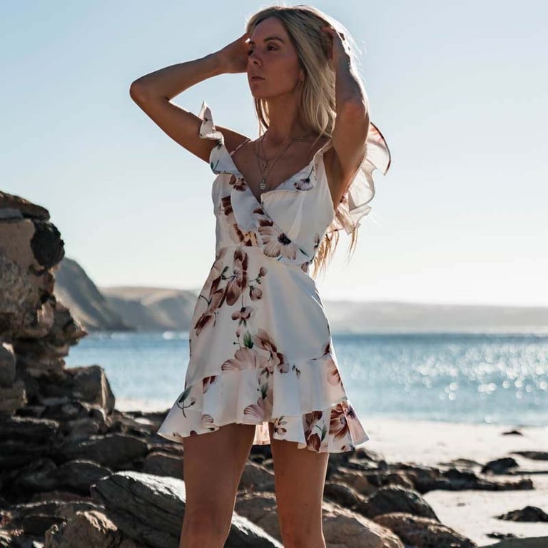 Short women's dress with decorative elements, in which you will look absolutely fantastic.