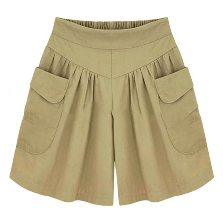 Women's shorts with a high elastic waistband. Loose fit with gathering and side pockets. Available in multiple colour options.