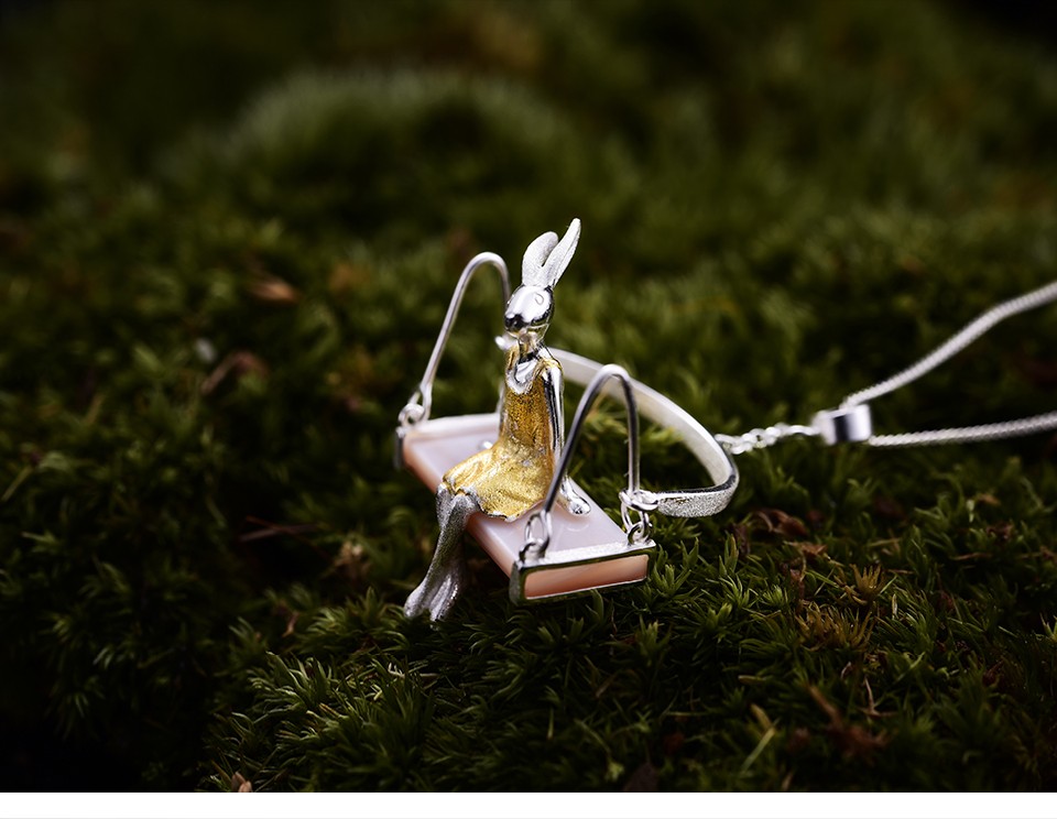 We have a unique, handcrafted silver pendant of a swinging doe = female rabbit.