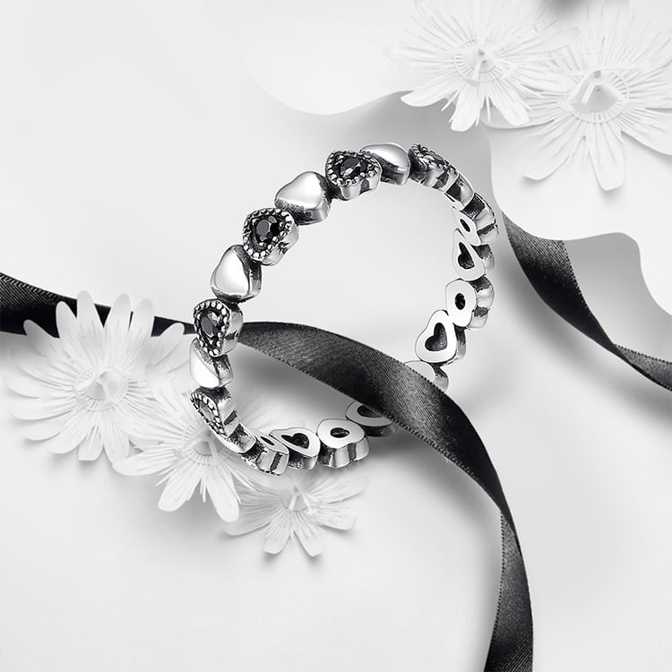 The two-tone heart-shaped ring adorned with zircon will beautify any woman's hand.
