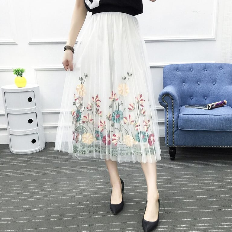 Women's skirt with floral embroidery. Loose long fit with an elastic waistband. One size fits all.