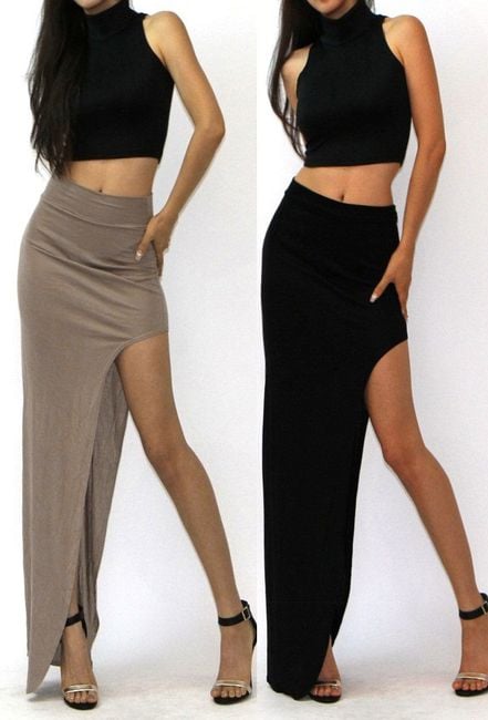 Do you enjoy being the centre of attention? Are your outfits often characterised by originality and uniqueness? Then this long skirt should not be missing from your wardrobe. Its interest is enhanced by a striking side slit. You can choose from several colours and sizes.
