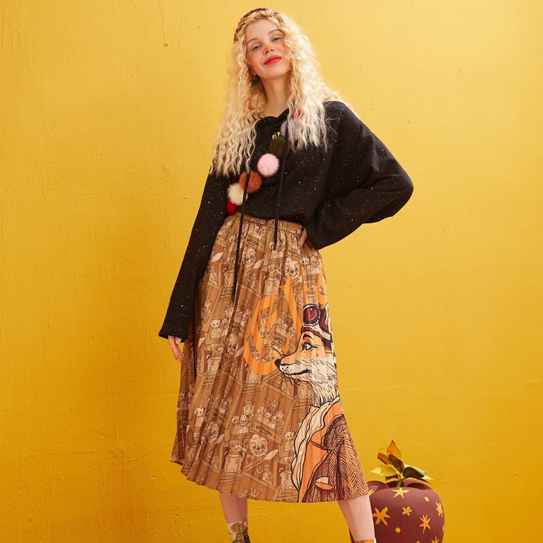 Women's skirt with a fox pattern.
