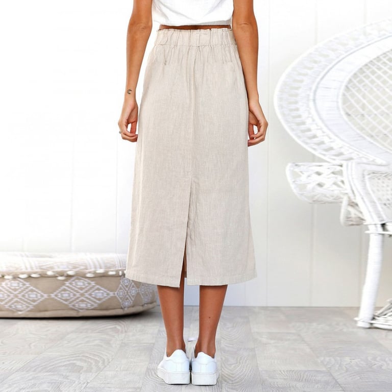 Women's midi skirt in an A-line cut. The skirt has a length below the knee and decorative button fastening. Made from a pleasant lightweight material.