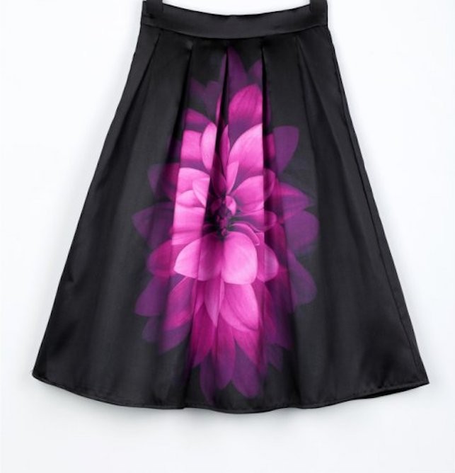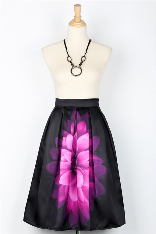 Dress stylishly for summer with this skirt featuring a beautiful dahlia.