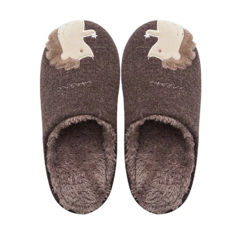 These comfortable slippers with an embroidered hedgehog are suitable for home or the cottage.