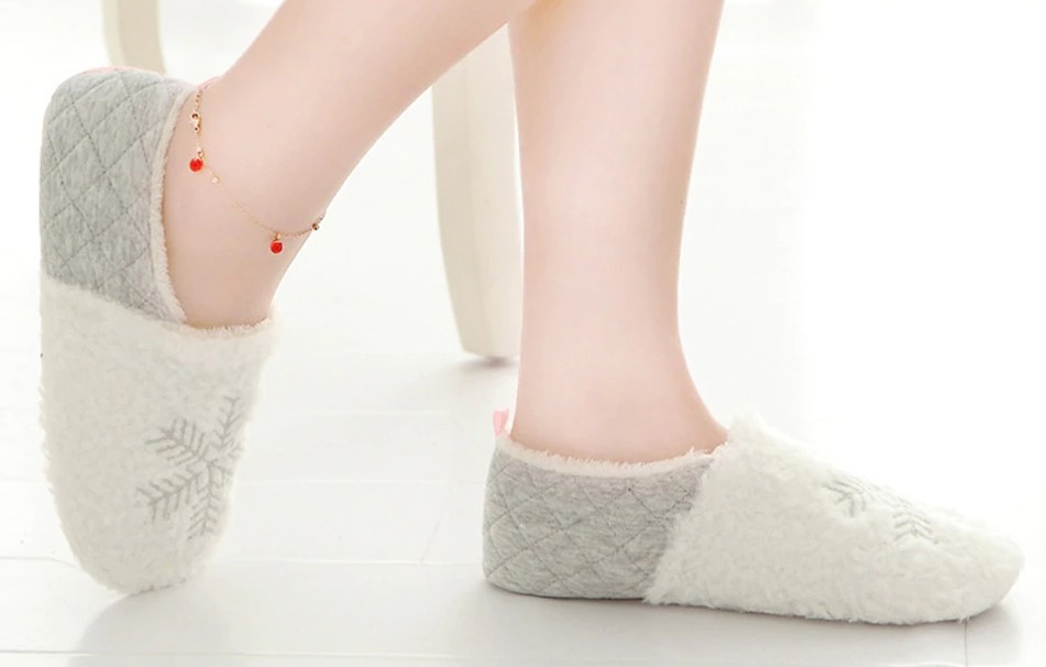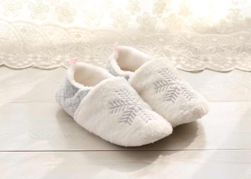 These warm slippers with a snowflake print are the perfect choice for home or the office.