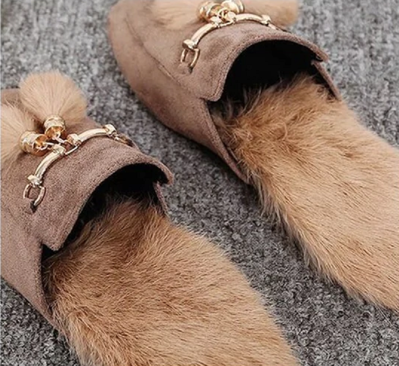 These comfortable slippers with fur are of high quality, and every woman will fall in love with them.