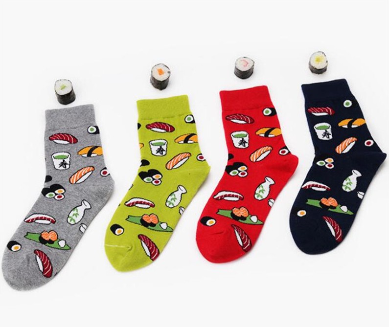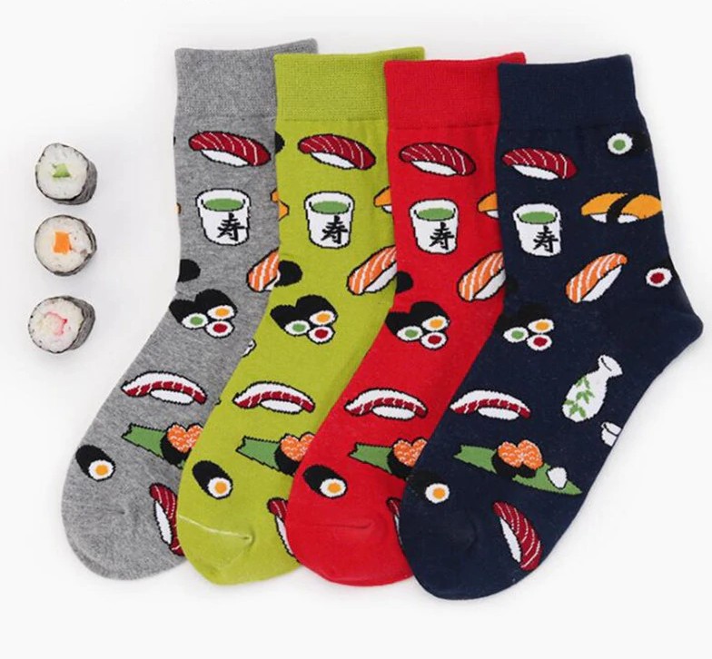 Socks with embroidered pieces of Sushi are simply irresistible!