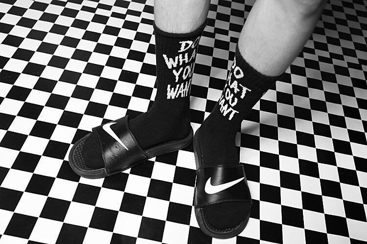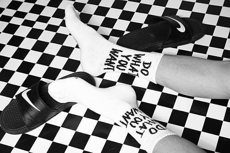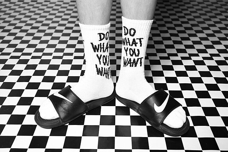 The socks feature the phrase "Do what you want."