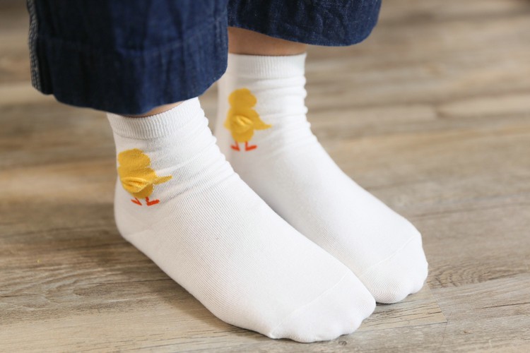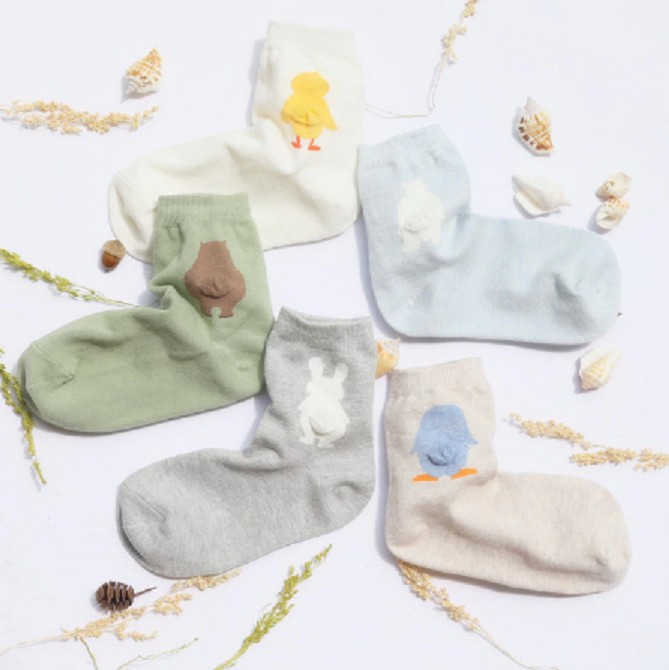 The socks feature embroidered animal "backsides", which look very cute.