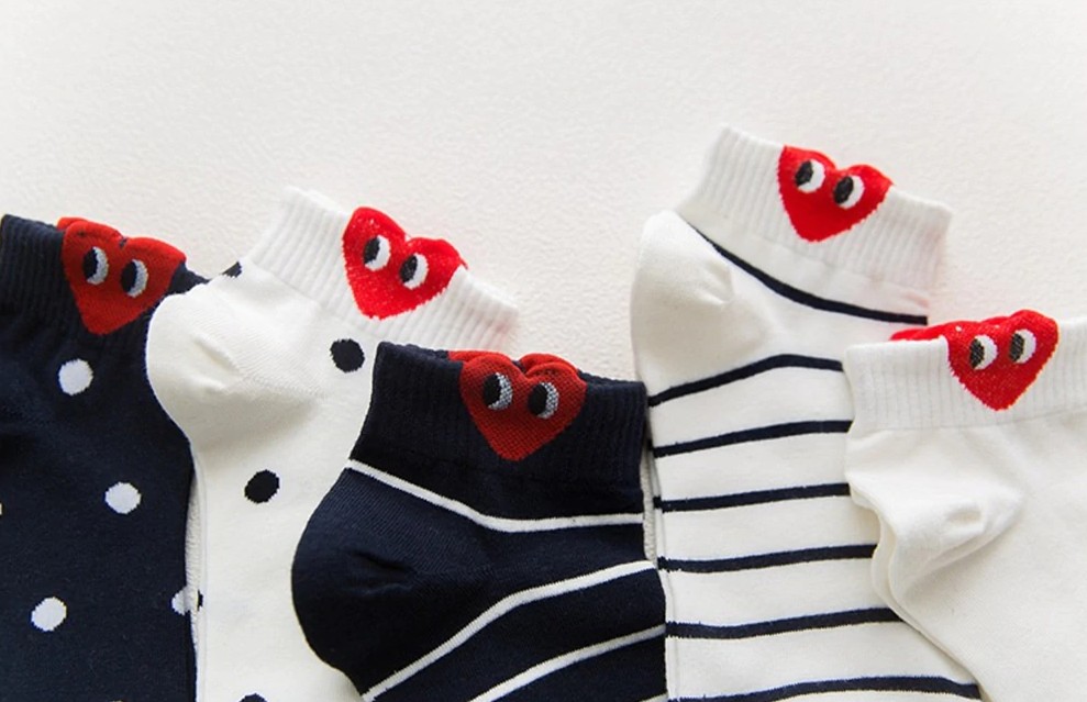 Socks with hearts are very comfortable.