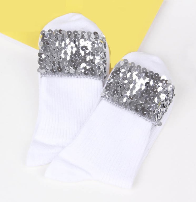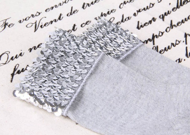 The socks are adorned with sequins at the top. The sequins on the socks look stunning in trainers!