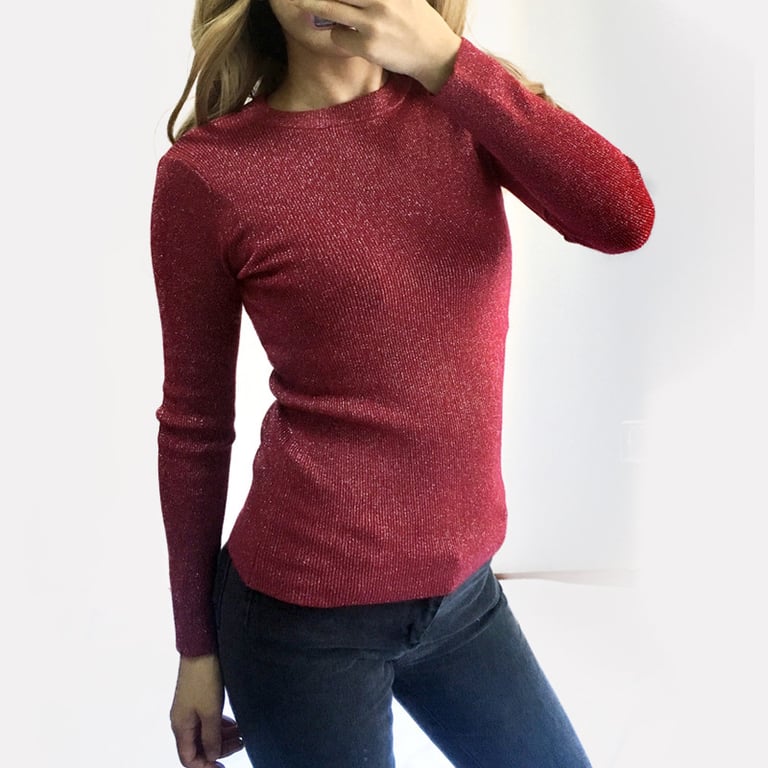 Women's sweater with long sleeves and a round neckline. Comfortable. Fitted to the body. The sweater is entirely stitched with shimmering thread. One size. Available in several colour options.