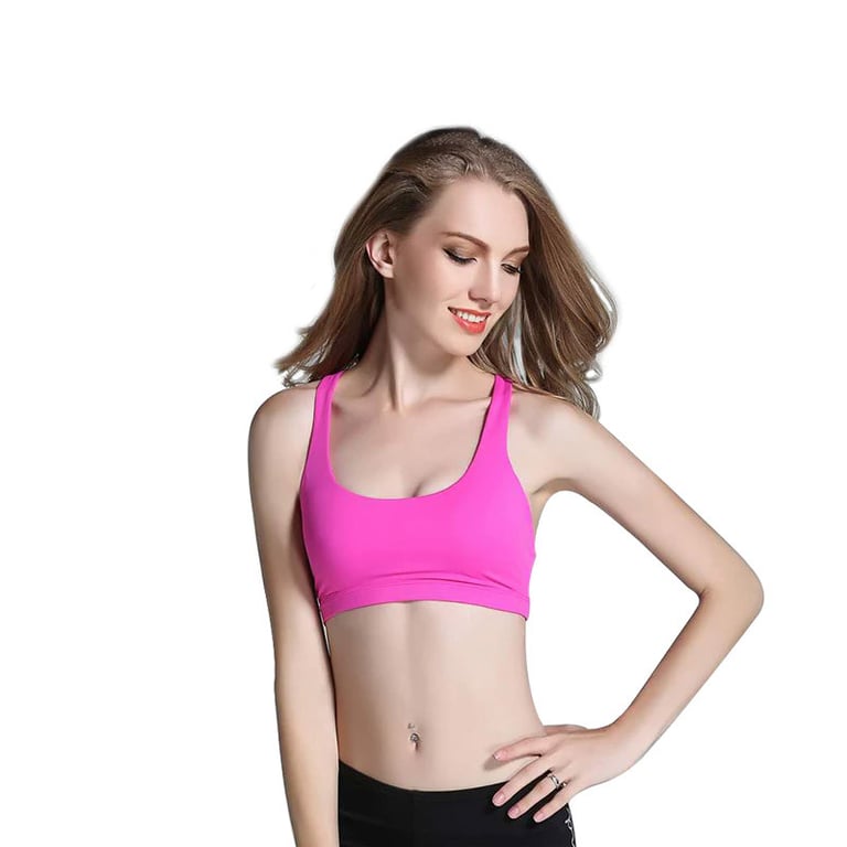 Women's sports bra with a push-up effect. Round neckline. Thin straps with a crossover at the back. Available in multiple colours.