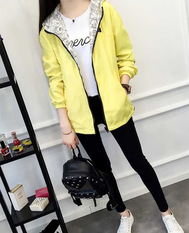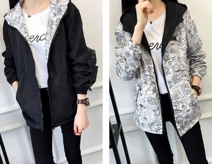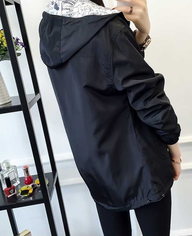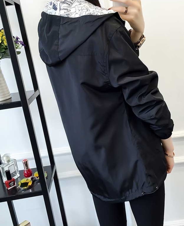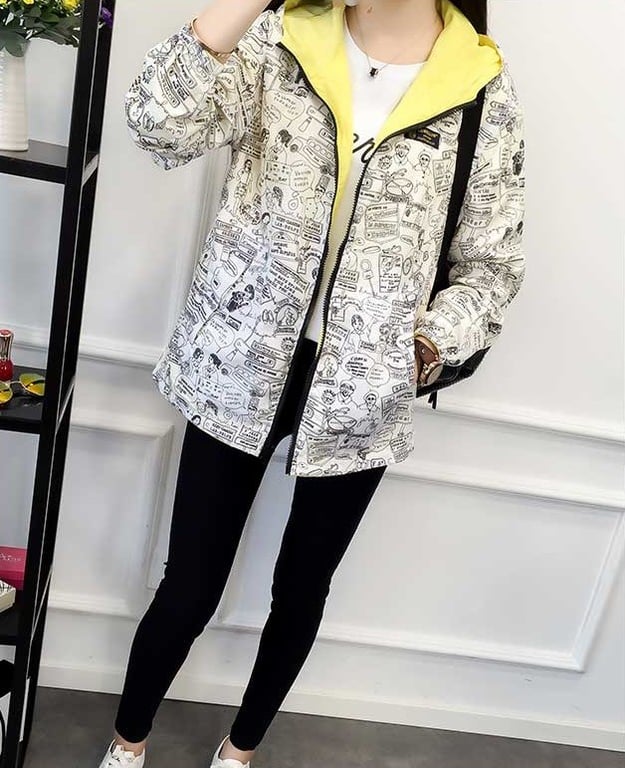 Be stylish with this reversible jacket; one side is colourful and when you turn it inside out, it features a comic print.