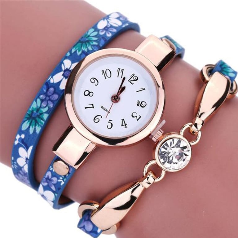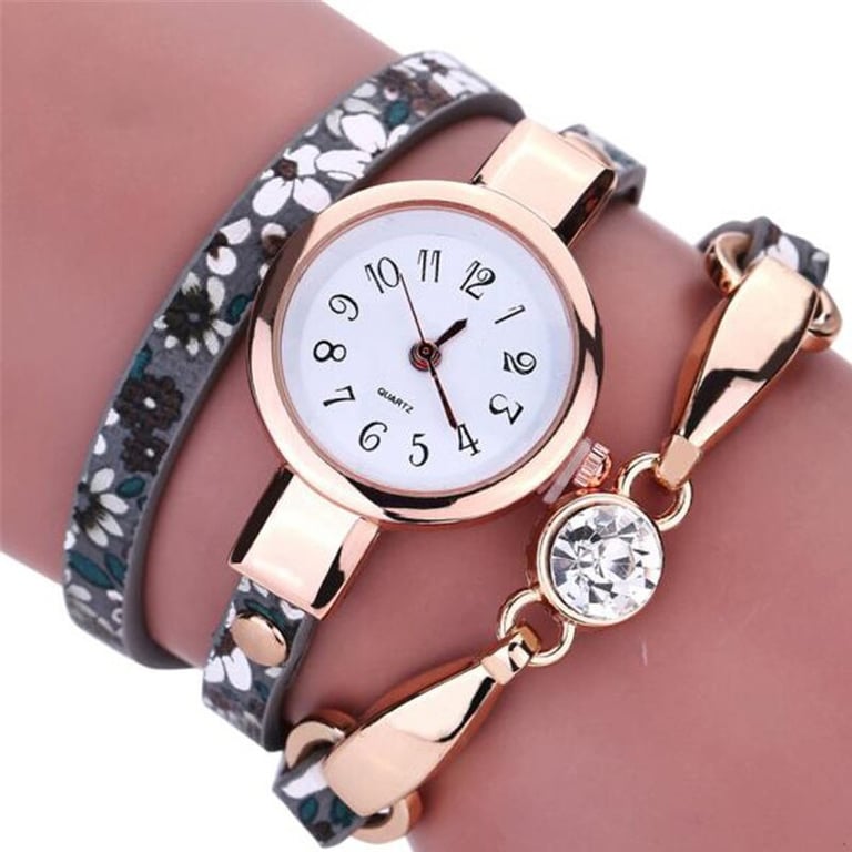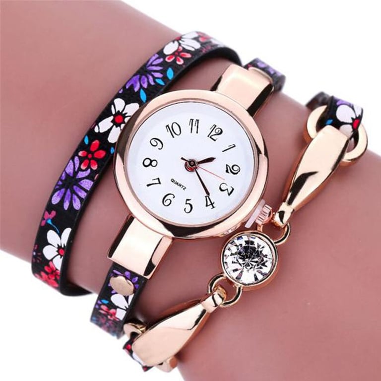 Stylish strap watches for women with a delicate floral pattern. The watch is a great accessory for any outfit.