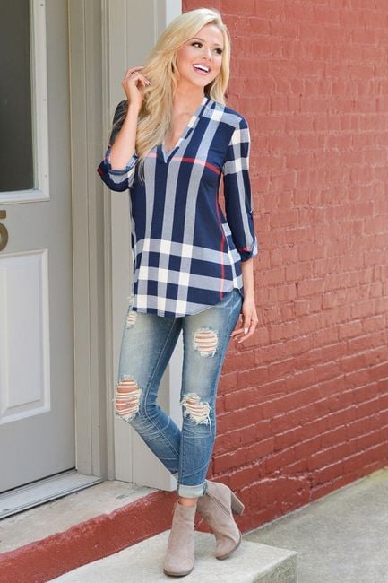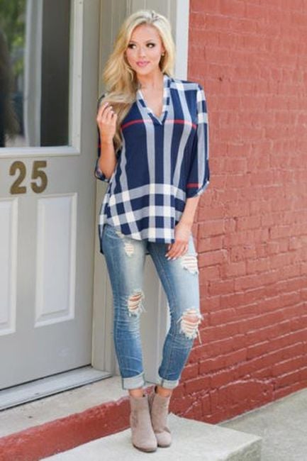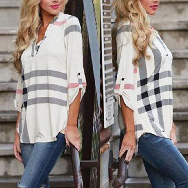 The blouse has a beautiful striped pattern and looks elegant. It pairs wonderfully with jeans and is available in 4 variants.