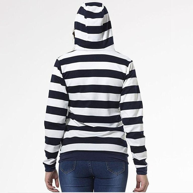 Dress comfortably in the stylish piece Donker. The cut is simple, featuring a hood and a bold striped pattern.