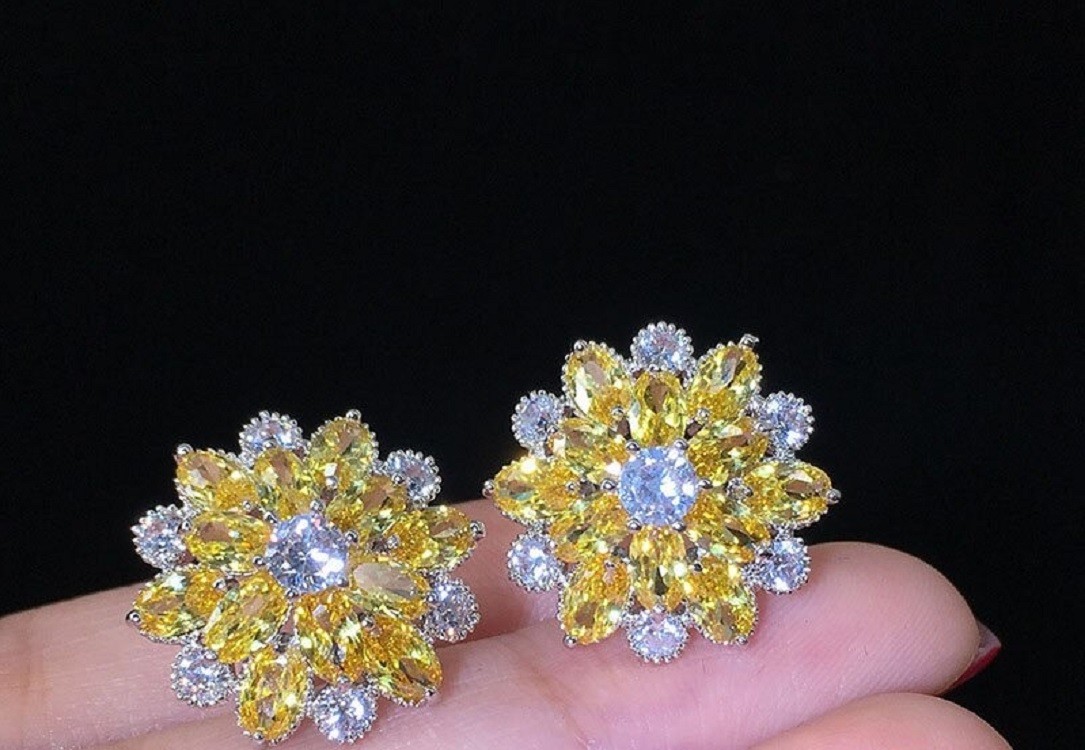 Women's Stud Earrings Flower with Stones
