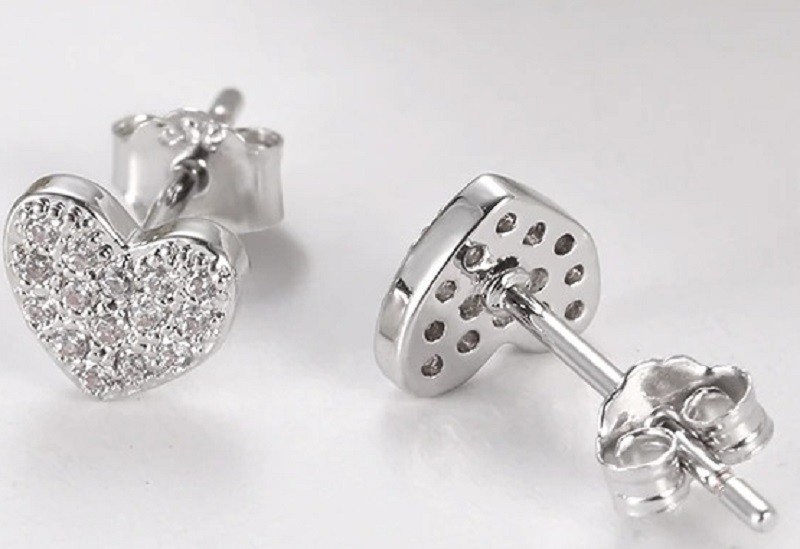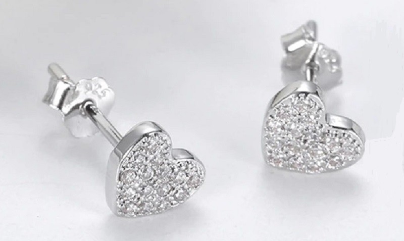 Women's Heart Stud Earrings with Zircons