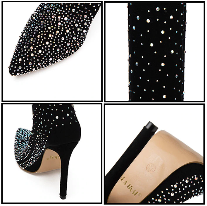 You will fall in love with these beautiful boots adorned with silver stones.