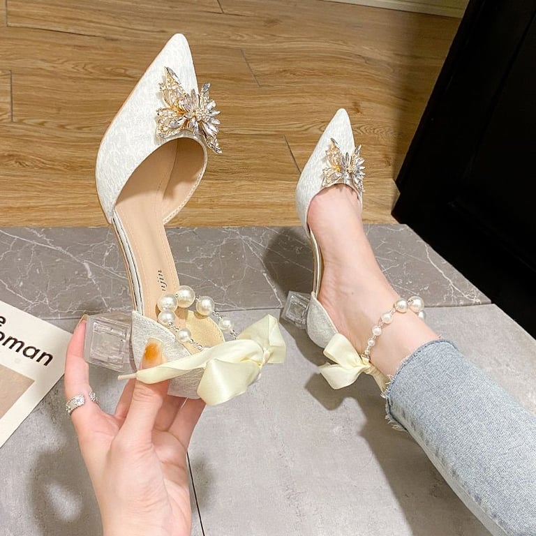 Available in two different colours, adorned with pearls, bows, and other small decorations.