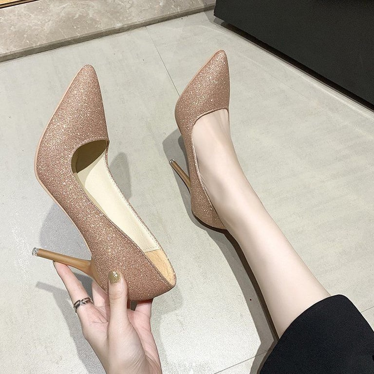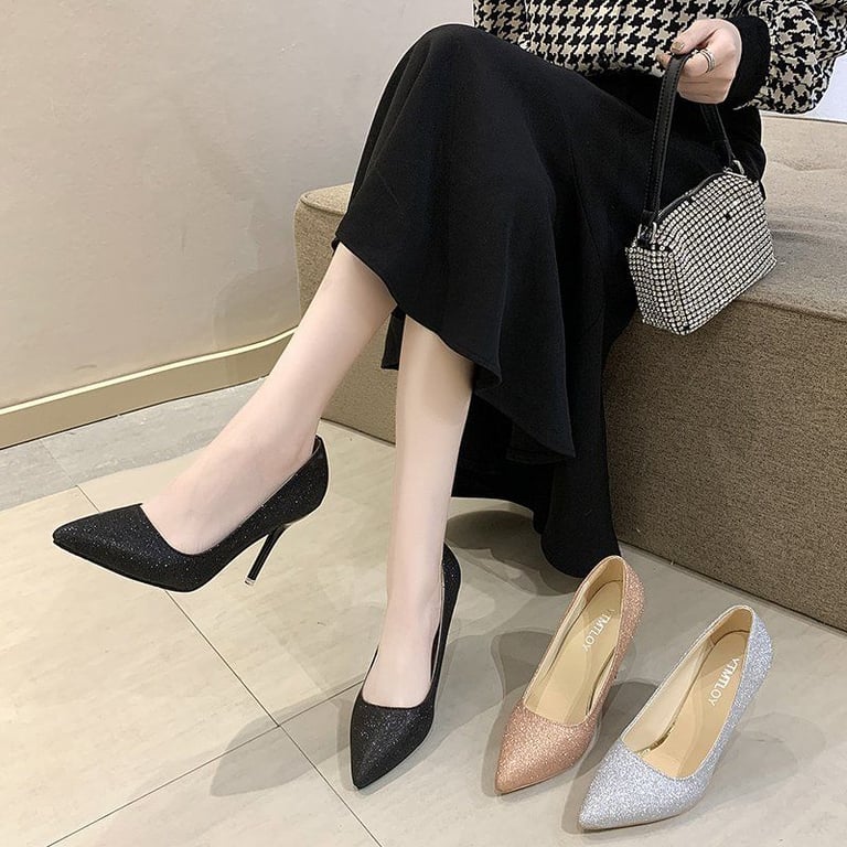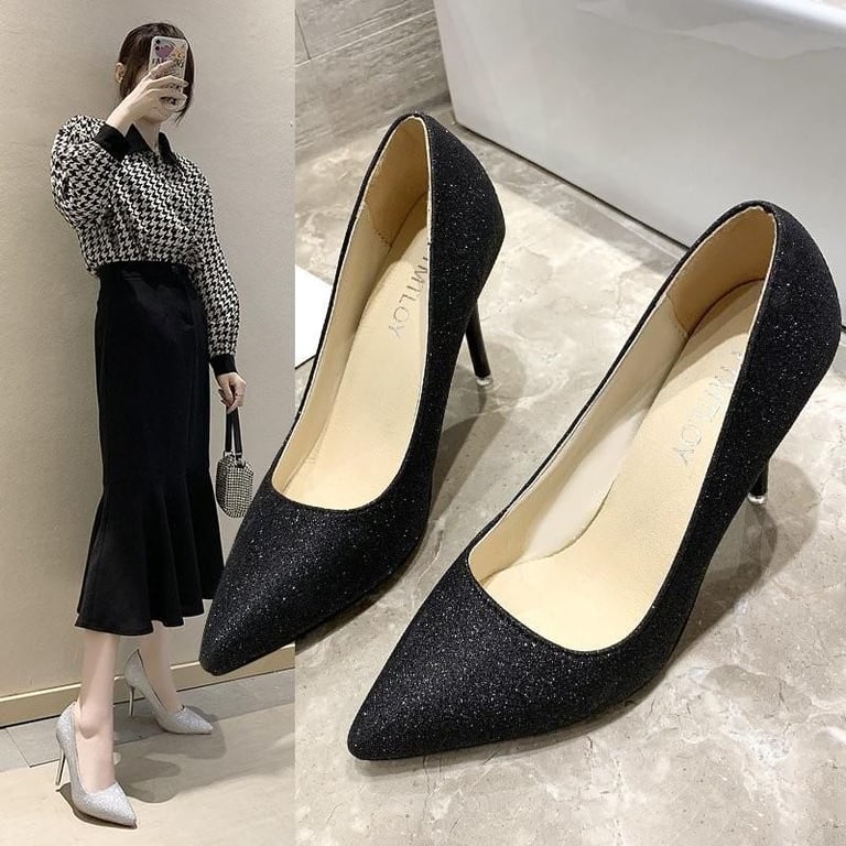 Evening shiny heels that are very comfortable and breathable.