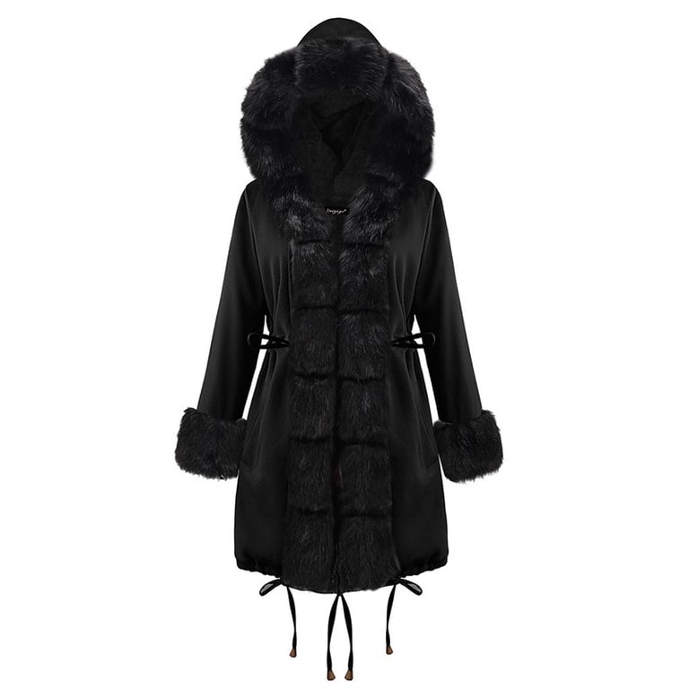 Enhance your wardrobe with a stylish coat jacket featuring a highly elegant fur texture. The longer cut with a comfortable hood will delight any woman who enjoys skirts and dresses. The jacket only has ties for fastening, not a zip.