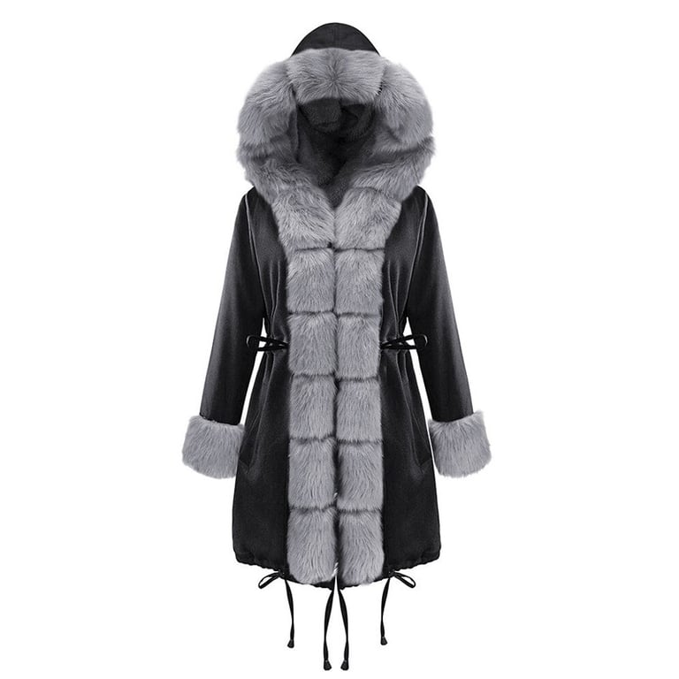 Enhance your wardrobe with a stylish coat jacket featuring a highly elegant fur texture. The longer cut with a comfortable hood will delight any woman who enjoys skirts and dresses. The jacket only has ties for fastening, not a zip.