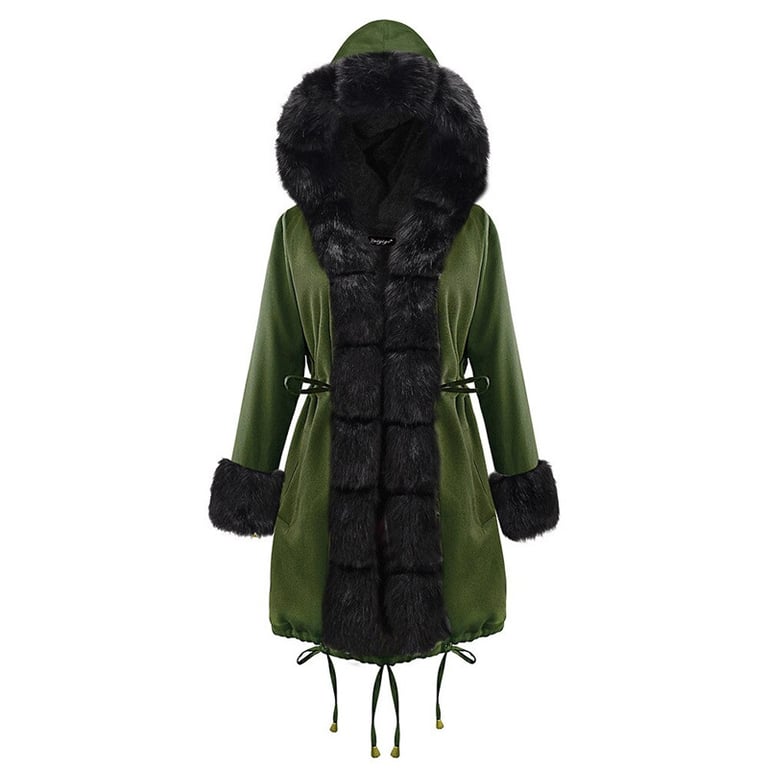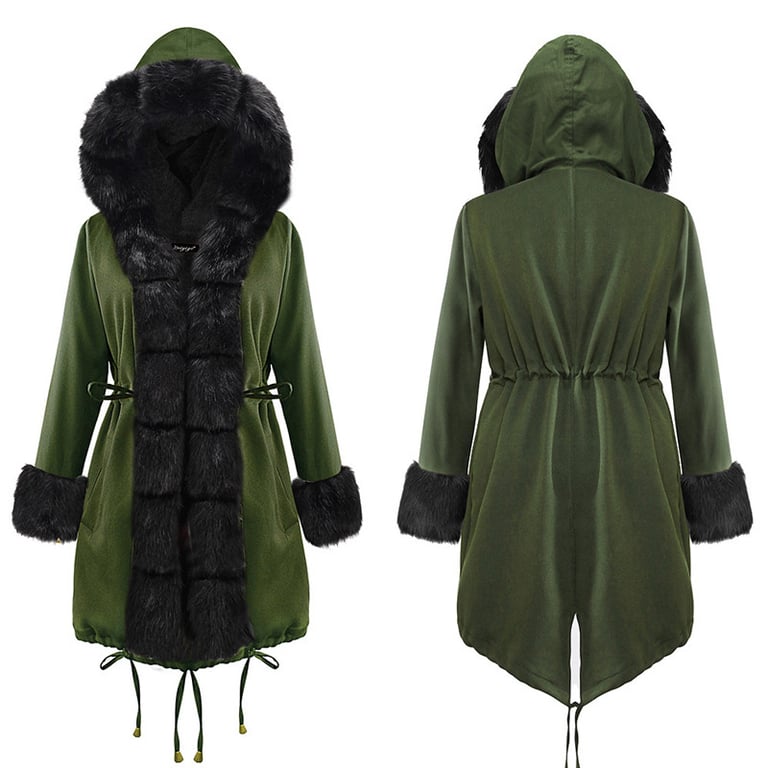 Enhance your wardrobe with a stylish coat jacket featuring a highly elegant fur texture. The longer cut with a comfortable hood will delight any woman who enjoys skirts and dresses. The jacket only has ties for fastening, not a zip.