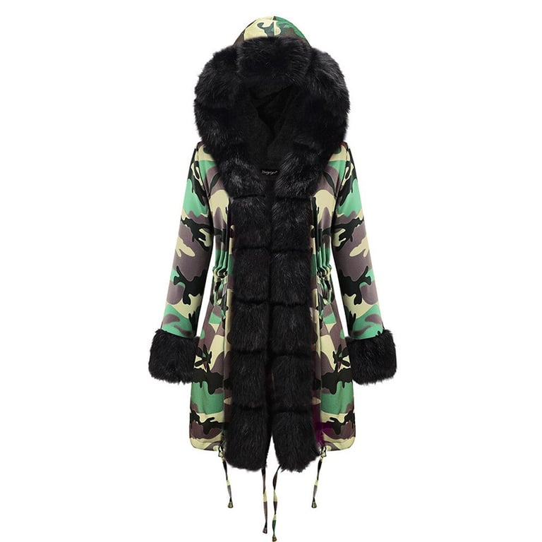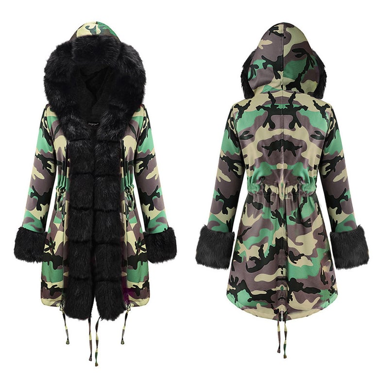 Enhance your wardrobe with a stylish coat jacket featuring a highly elegant fur texture. The longer cut with a comfortable hood will delight any woman who enjoys skirts and dresses. The jacket only has ties for fastening, not a zip.