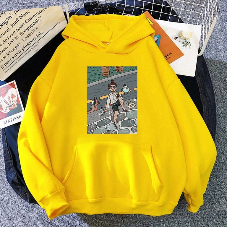 Loose-fitting women's hoodie with a hood available in various colours.