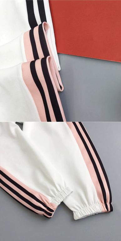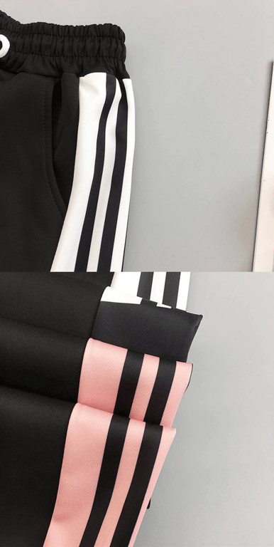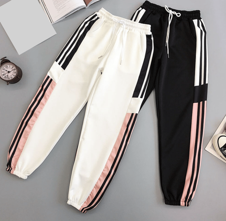 Stylish sweatpants with modern stripes on the sides, high waist, and pockets.
