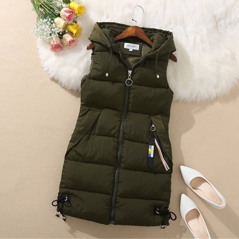Women's Stylish Long Quilted Winter Gilet with Hood