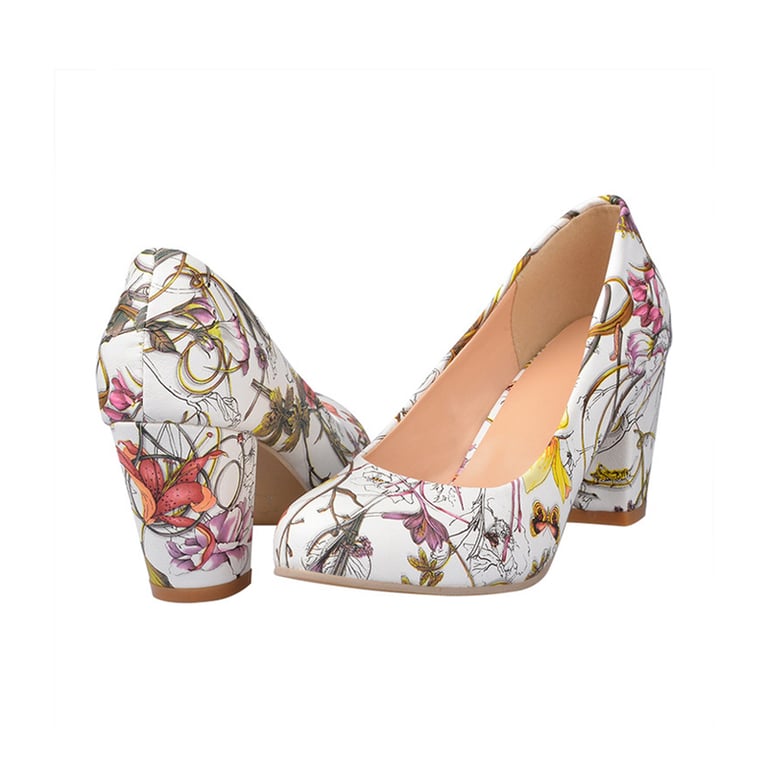 Put on these beautiful floral print court shoes. The shoes are made from high-quality and comfortable material.