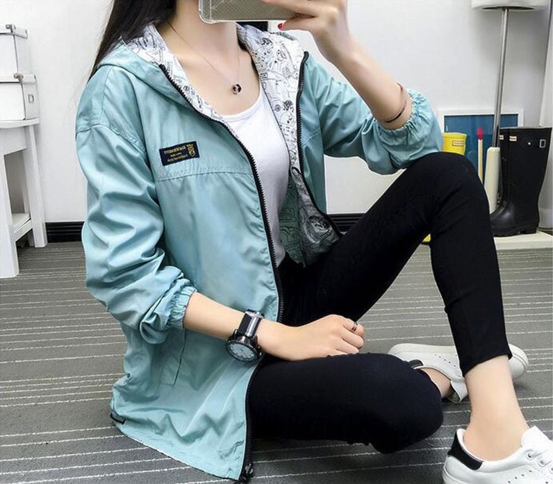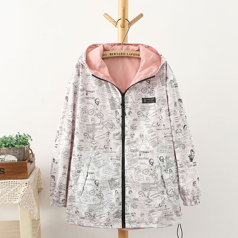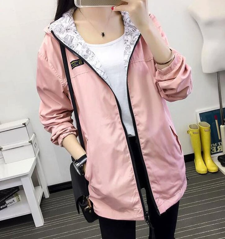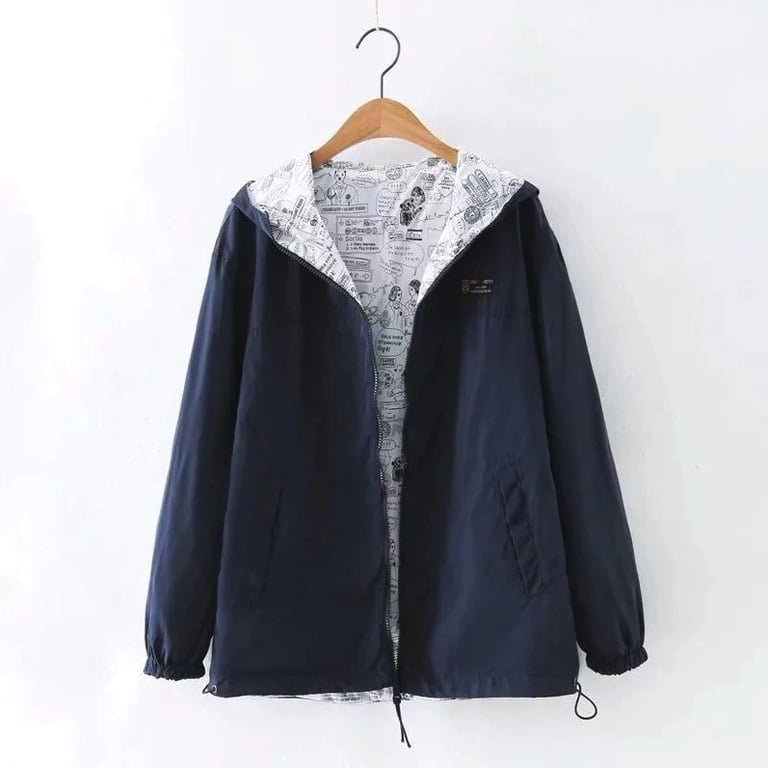 Women's reversible jacket, which is colourful on one side and features a stylish pattern on the other side.
