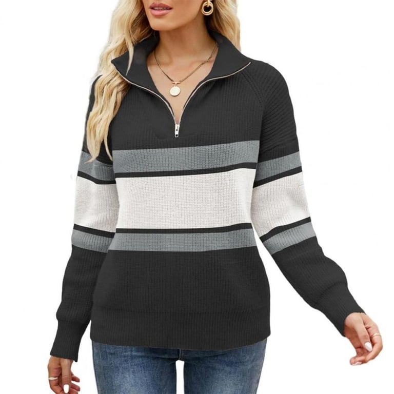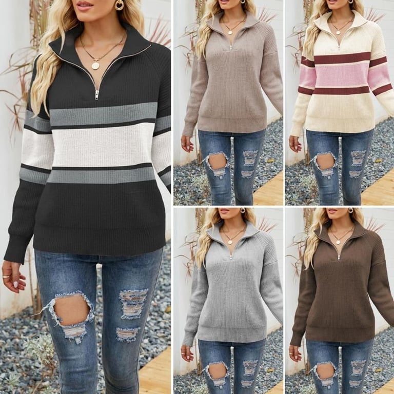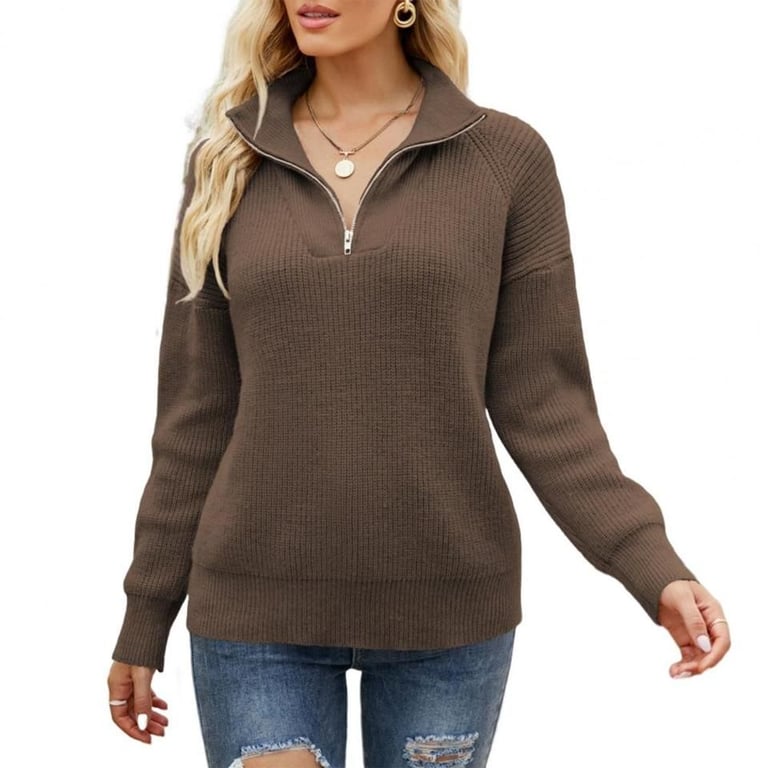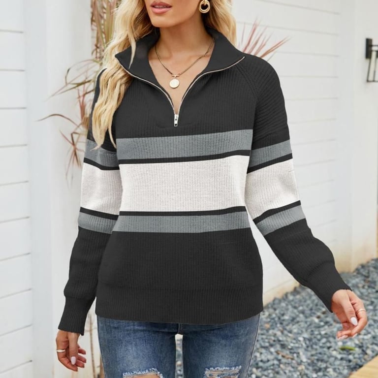 Modern women's knitted zip hoodie.