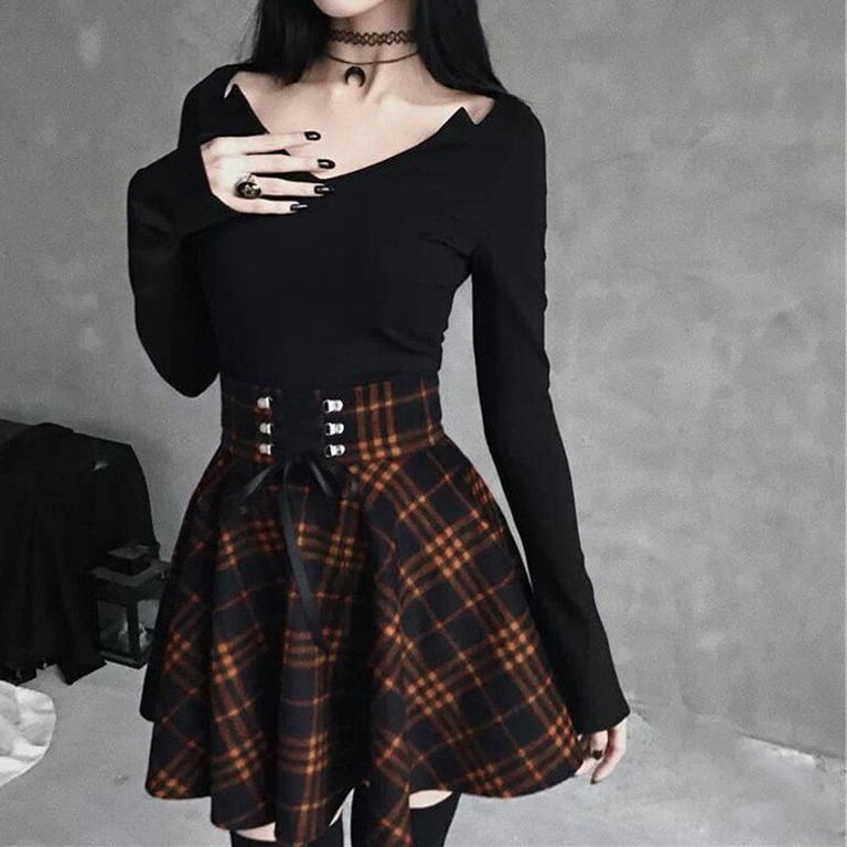 An attractive model of a shorter skirt for everyday outfits. The slightly gothic style will please every rebel.