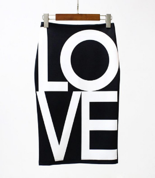 Capture your surroundings with this beautiful stylish black skirt, featuring a white LOVE print on the front.