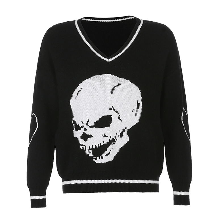 Tags: sweater, women's sweater, V-neck sweater, skull, gothic
