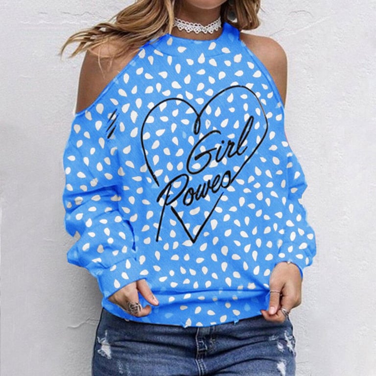 T-shirt with an attractive cut. The exposed shoulders are very appealing in combination with the print and colour.