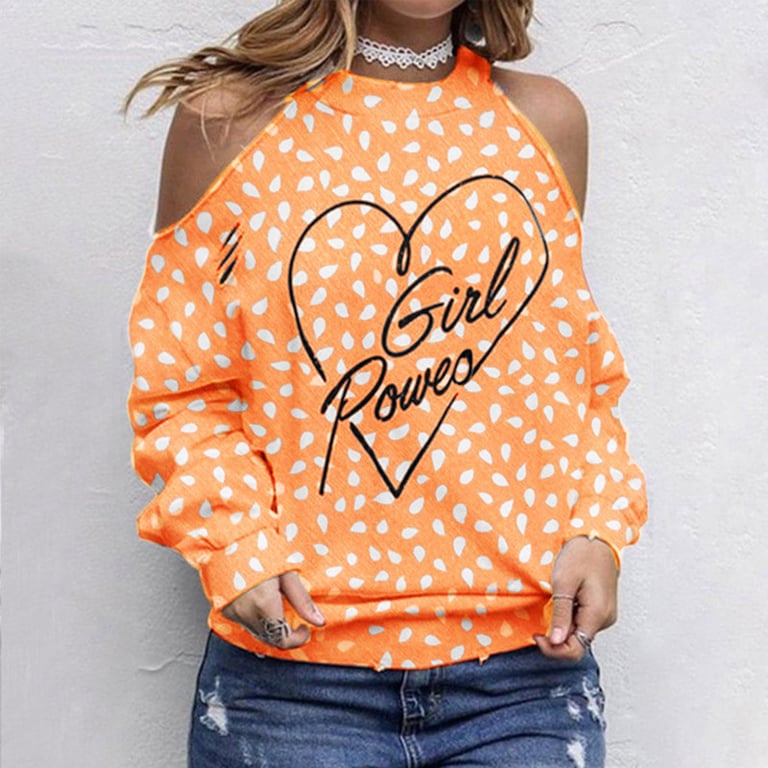 T-shirt with an attractive cut. The exposed shoulders are very appealing in combination with the print and colour.