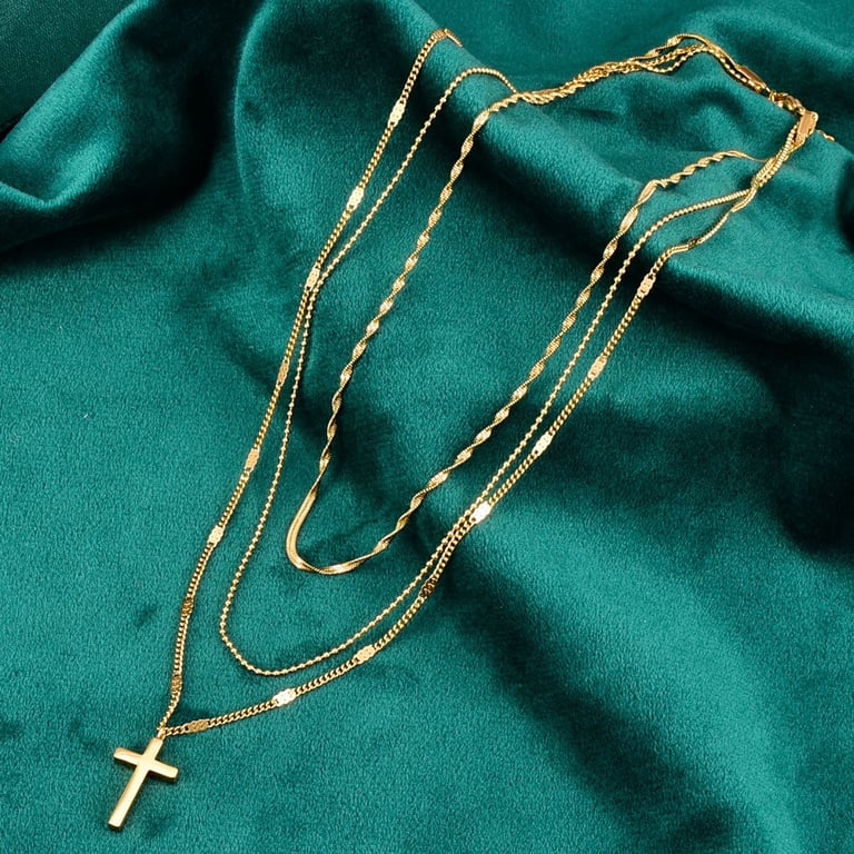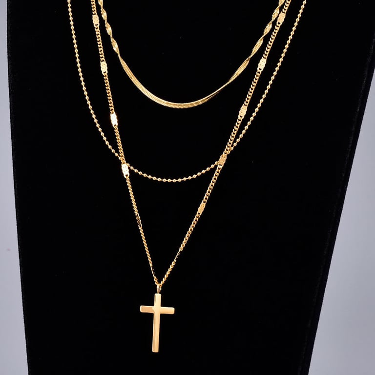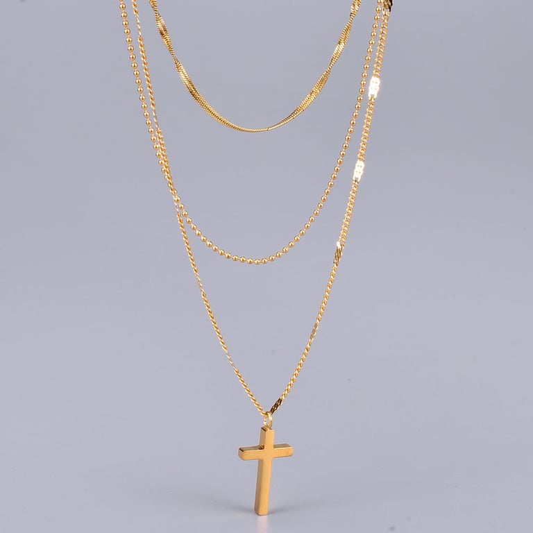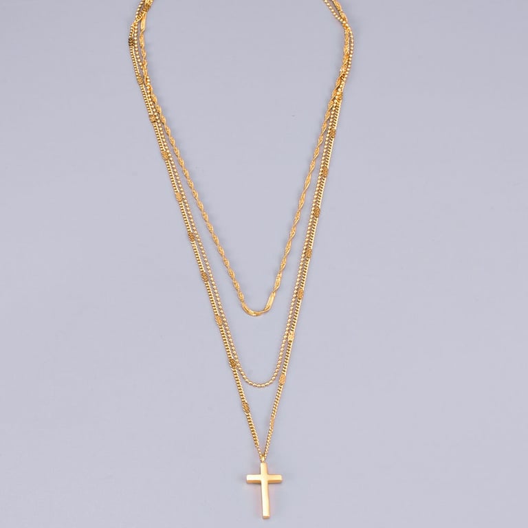 Women's Stylish Triple Necklace with Jesus Cross