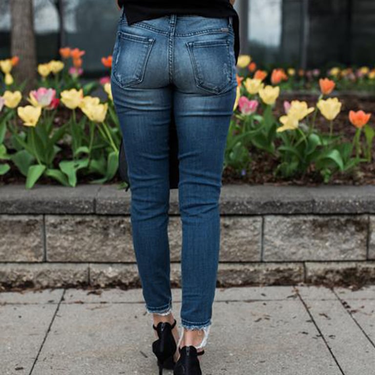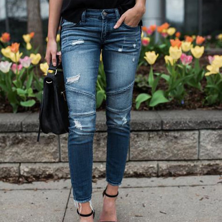 Complete your outfit with stylish jeans featuring a special pattern. They pair well with ankle boots and a long parka coat.