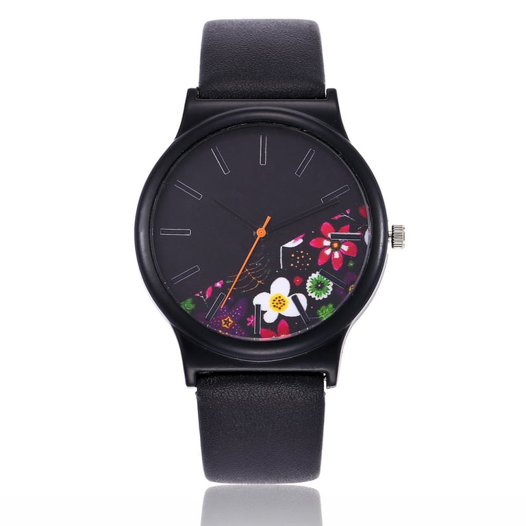 Women's Stylish Watch with Floral Motif